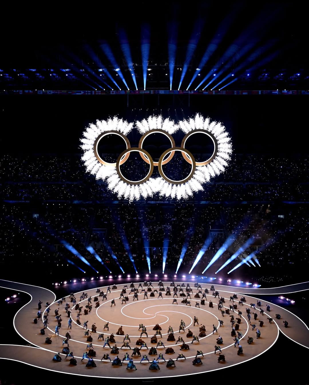 The evening concluded with a historic gesture: the Olympic flame was lit simultaneously in two locations—at the Arch of Peace in Milan and in Piazza Dibona in Cortina d’Ampezzo. It marked the first time in Olympic history that the flame was ignited in more than one place at once.